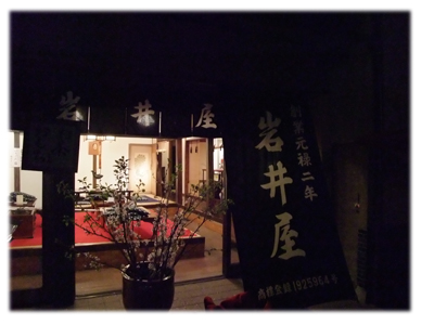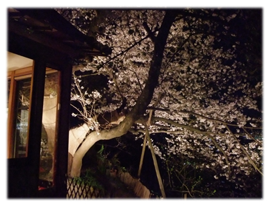 岩井屋の横の桜は、お店からもれる光できれいに撮影できました。