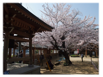 神社にたどりつく手前にあるお寺さん、観音寺の境内にも見事な桜があって、鐘つきのお堂の風情もあってなかなかです。