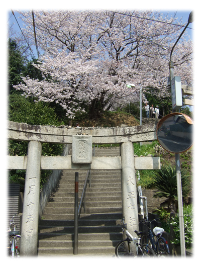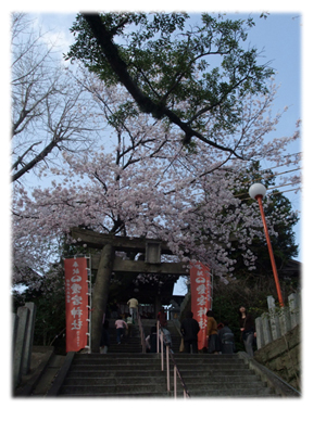 桜が一杯の急な石段を、愛宕の山を登ります。