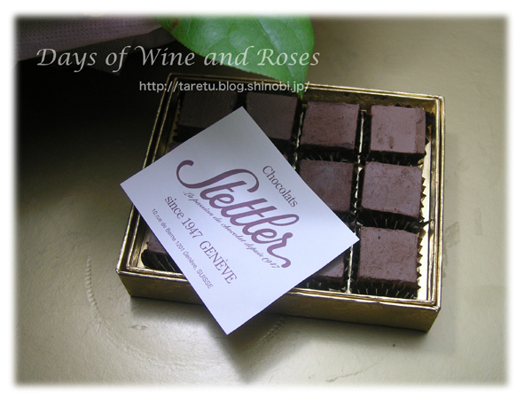 いただきもののひとつはステットラーチョコレート。「ジュネーブの石畳」と呼ばれる生タイプのキューブ型の生チョコレートのようです。