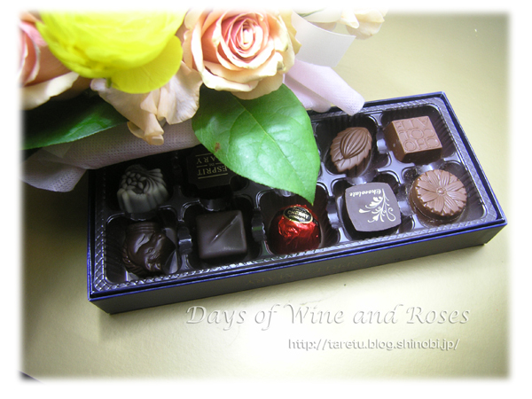 まずは私からということで今年もペニンシュラブティックのチョコレートにしました。もう、デパートのチョコレート売り場には近づかない。