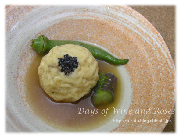 なすとおくらをいっしょに煮て、出汁をかたくりでとろみをきかせてかけてみました。ひろうすそのものも当然美味しいですが、それからでた出汁で煮た野菜がめちゃくちゃ旨い。