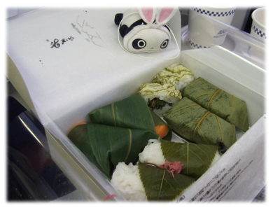 笹でつつまれた三角おにぎりのゐざさ寿司、
