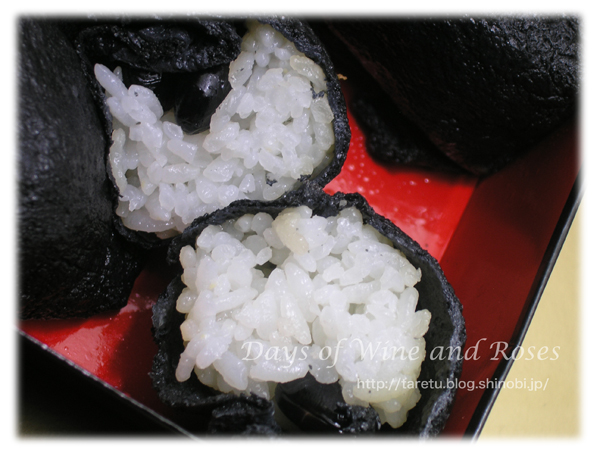 見た目、黒のインパクトはあるけれど、普通に美味しいいなり寿司なのです。