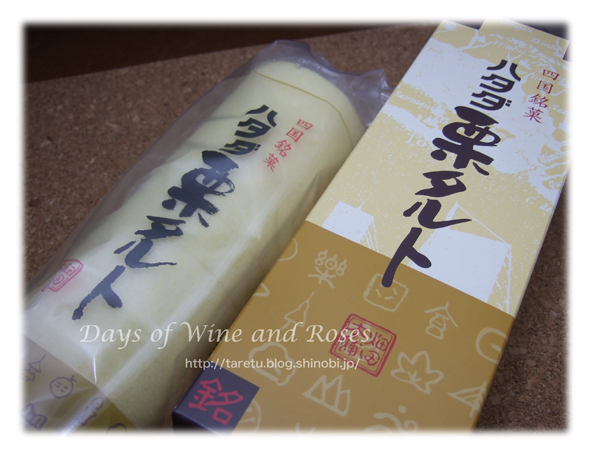 もうひとつが、ハタダの栗タルト。タルトといっても洋菓子ではなく、ふわふわのロールケーキで柚子餡を巻いた和菓子です。