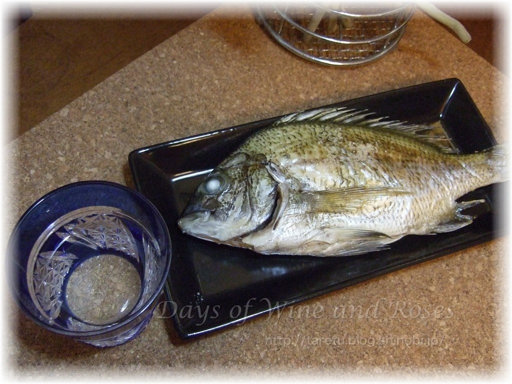 あてにはお魚の塩焼きを。のどぐろってわけには行きませんが、地元姪浜漁港で穫れた新鮮なヘダイ(シロチヌ)