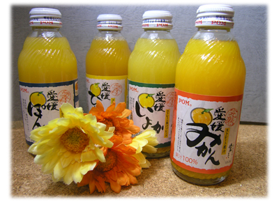 みかん、いよかん、ぽんかん、ひめぽんの4種類。さすが果汁100%ということで、それぞれの蜜柑の違いもよくわかります。