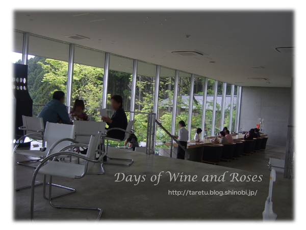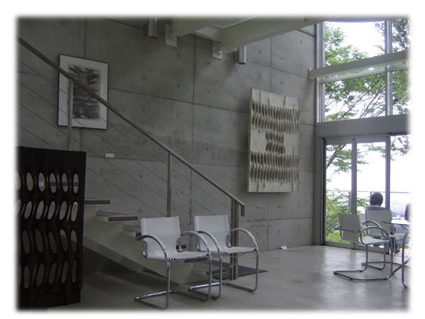 緑したたる若杉山の中に突如現れるモダンなコンクリート打ち出しの建物。なかなか、シュールな眺めではあります。