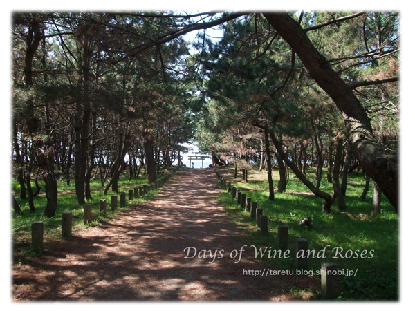 海辺へ向かって、直線の道が開けています。両サイドを生の松原の松林が飾ります。もしかしたら、海そのものがご神体なのかもしれません。