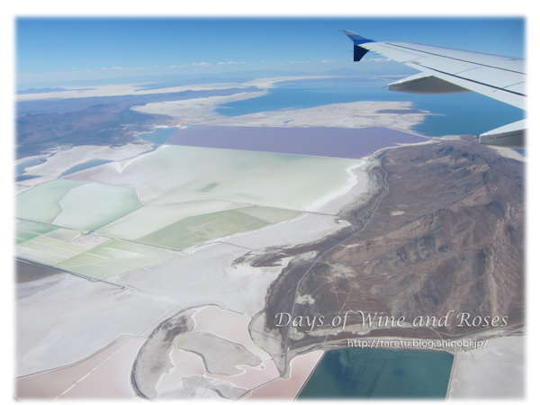 サンフランシスコからソルトレークシティまでの機上。私は疲れてうとうとしていましたが、配偶者は眼下にひろがる光景にびっくりしたとのこと。その写真がとれたことだけが、拾いモンだったとか。