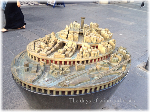 お店の前には、ニューカッスルの街の模型らしきものがありました。ローマ時代とか古代のものなんだろうか。柱で支えられているらしきところがあぶなげな城塞都市っぽいです