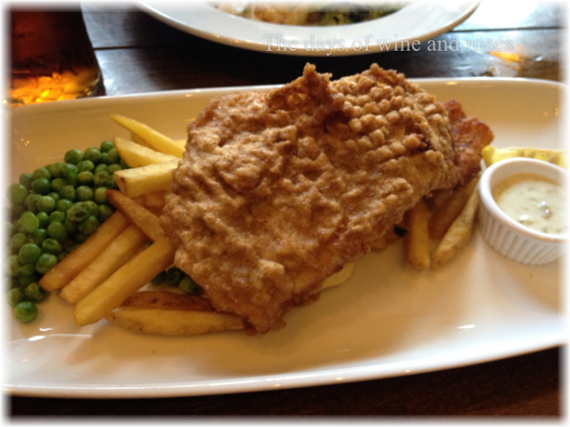 なんでも昔のフィッシュ&チップスはもっと油ぎどぎどだったらしいのですが近頃は軽め。油もよく切られていますし、衣も薄めでさくっとしています。
