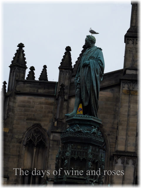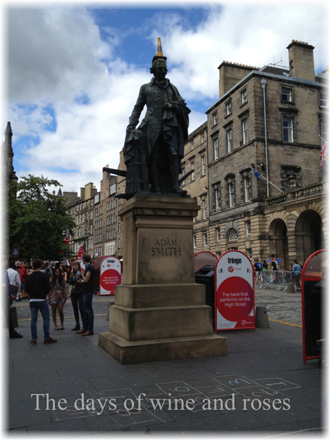 エディンバラ出身の経済学者、「国富論」でおなじみのアダム・スミス像。「経済学の父」も今日ばかりは、ビールを飲み過ぎた酔っぱらいのようなヘンな帽子をかぶってます。