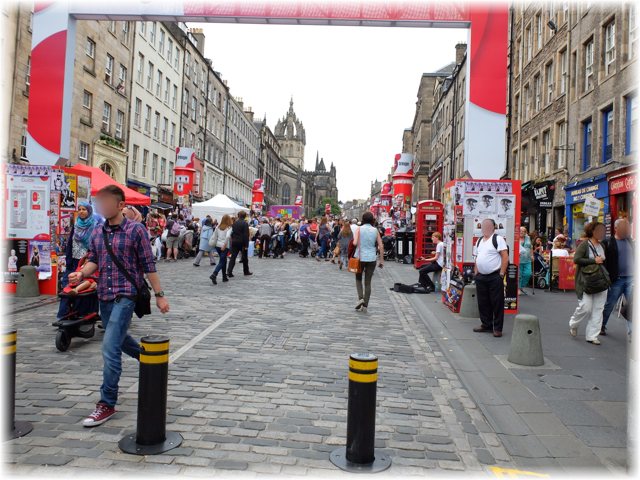 本来、スコットランドの重たい石造りが厳めしい旧市街なのですが、真夏の夜の夢か、お祭り中の賑わいで、街は華やかです。