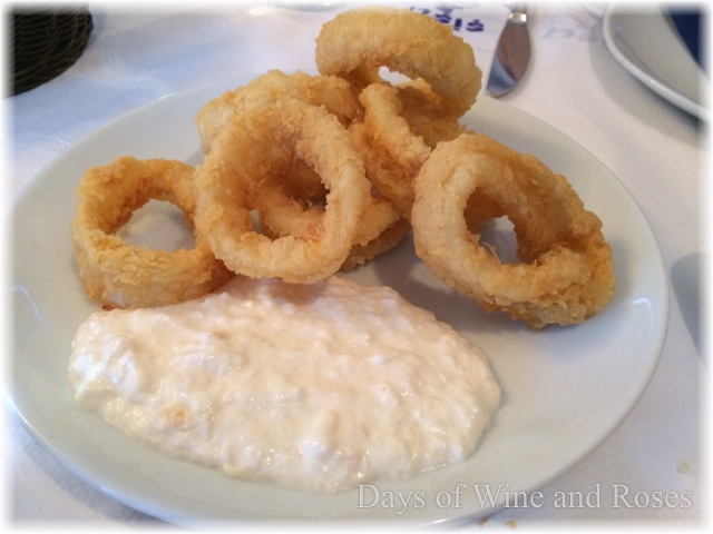 まず前菜としてフライドカラマリを。有り体に言えばイカのリングフライですね。