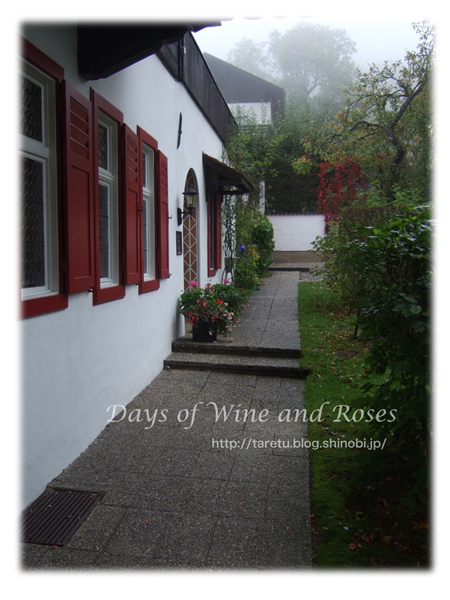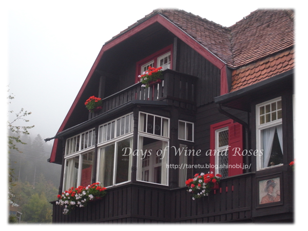 霧に濡れたクラシックなペンションも趣があります。