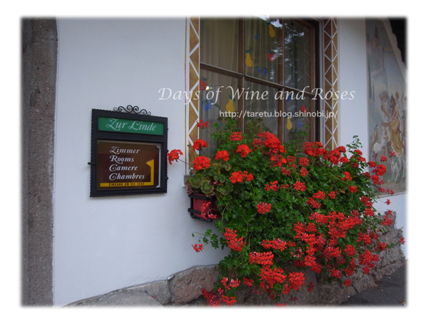 窓辺に飾られているゼラニウム。ドイツやスイスやオーストリアでは、窓辺にゼラニウムで飾られていることが多いです。赤の色が可愛らしい花ですが生(しょう)が強くて手入れいらず。虫除けの効果もあるそうで、一石二鳥だからってことみたいです。