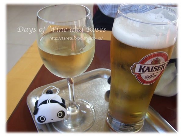 私は白ワイン、配偶者はビール。えへへ。