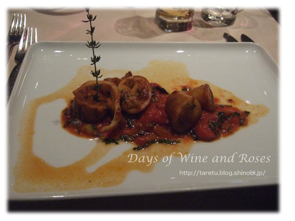 イカのトマト味ソース。ハーブの使い方がとても上手です。