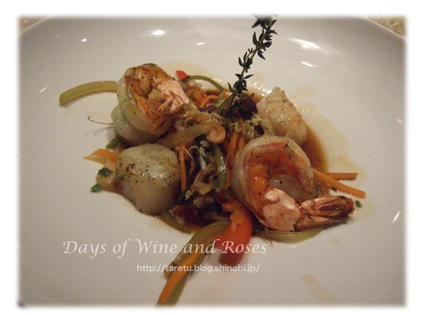 メインは帆立と海老のソテー。