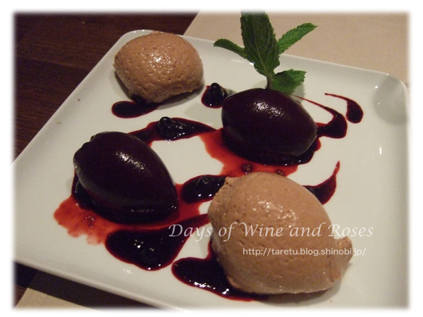 デザートは断ったけれど、なんかそうもいかないみたいで、最後に全体に一皿だけ出てきました。ラズベリーとコーヒーのムースのよう。