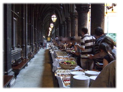 立食パーティです。普通、アメリカなどでは長いスピーチなんかないのですが、さすがオーストリア(?)日本と同様に長い長い長いスピーチの後に、食事に。みんな結構獰猛(笑)