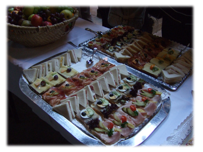 食べ物も、簡単なレセプションという割りには豪華です。特にこのオープンサンドイッチは美味しかった。