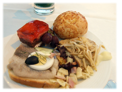 ワインは白と赤と1杯づつ。面白いので、ほぼ全種類を皿に取りました。ワインは白のほうが美味しいかな。