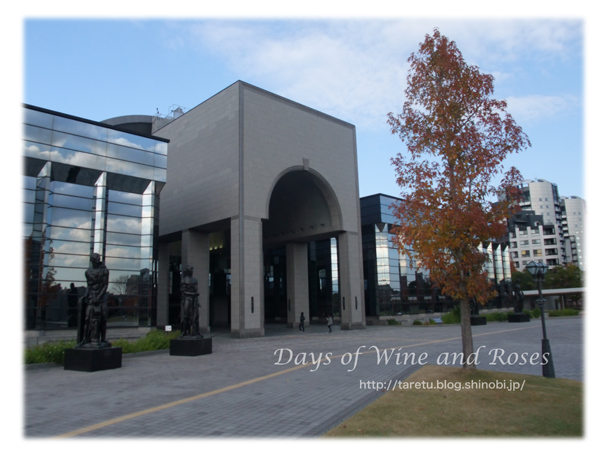 秋の県立博物館。木々が色づいて、なかなかの雰囲気です。私が行った日は秋晴れの素敵なお天気でした。