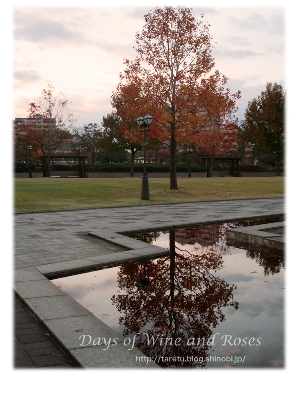 帰る時には日は傾きかけていました。雲がピンク色にそまり、ななめの日は黄金色。