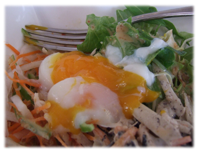 このゴボウサラダ、ポーチドエッグが載っているんですが、これを崩して混ぜると美味。ゴボウと玉子の黄身…もともとマヨネーズ系のサラダなんだから、あって当然なんだけど。