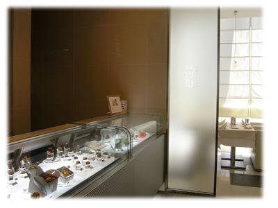 ショーケースの中は非常に凝った感じのチョコレートばかり。