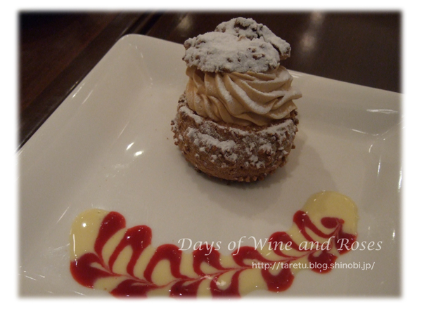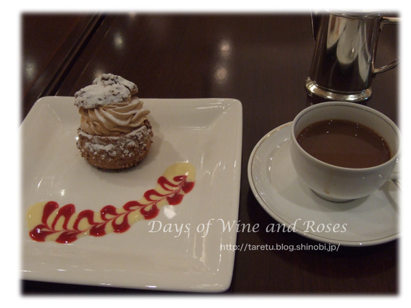 シュークリームはコーヒー味の生クリームとカスタードのハイブリッド。ああ、生シューだ、しまった~。すいません、私はカスタードだけのシュークリームが好きなんです。