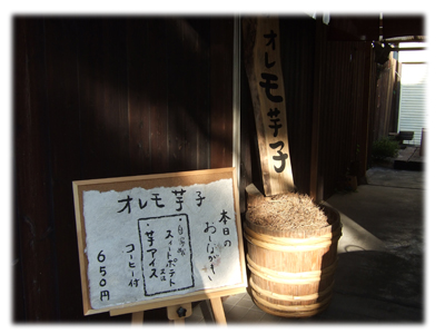 行きがけに、法隆寺の参道で見た「オレの芋子」というヘンすぎる看板。ここでお茶を飲む!と決めていたのです。