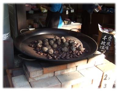 法隆寺に参道や境内の落ち葉で焼いているとか…。