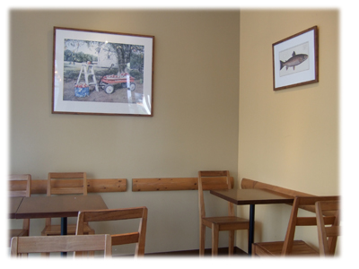 平日のホークスタウンはかなり寂しくて、このカフェもお客さんが数えるほど。窓が大きくて、白木の椅子やテーブルで、かなり明るい感じ。