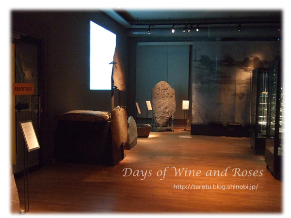 バイキングの文化は一種の巨石文化だったようで、ケルトなどで見られる石に刻まれた碑などがいろいろと残っているようです。(内部は暗くて、写真は撮りにくい状況でした。)