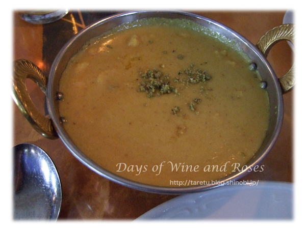 でもね。辛くないカレーって砂糖甘いの。豆を使ってあるとおぼしきこのカレー。スパイシーながら、ねっとりとした甘みがあります。カレー風味のお汁粉という感じ。