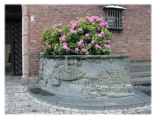 入口のところの花壇に、ストックホルムの街並が彫刻してあります。凝ってますね。