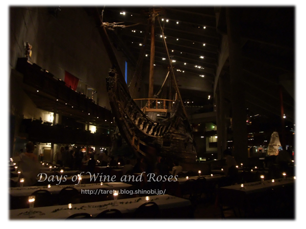 テーブルセッティングもちゃんとした本格派。暗い博物館内をキャンドルライトがゆらめきます。
