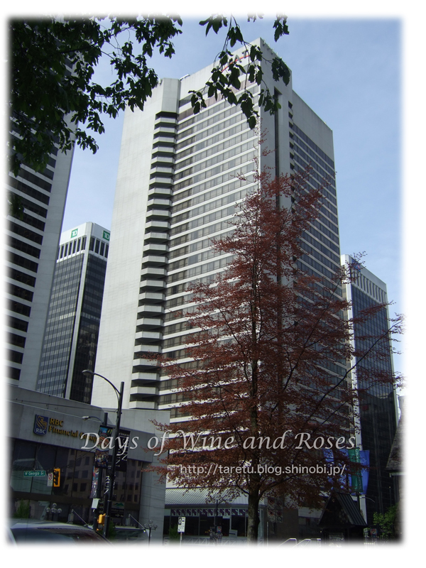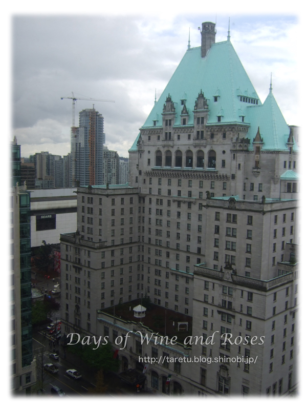 滞在したのは23階。外の風景もなかなかです。目の前に、向かいのフェアマウントホテルバングーバーのクラシックで優美な姿が見えます。