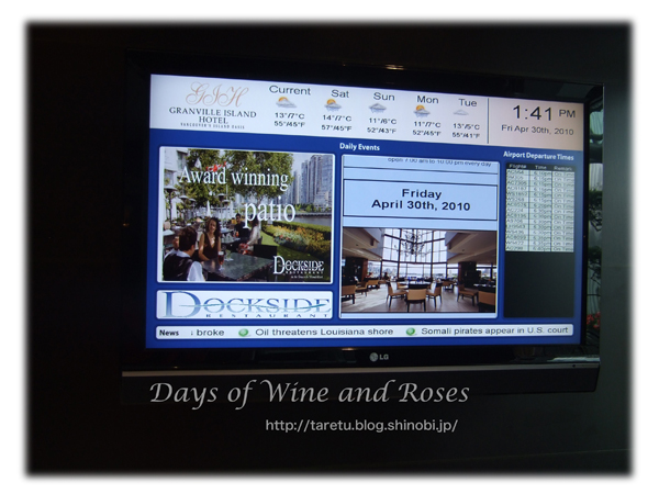 実を言うと、パンフレットには、Granville island breweryとあって、地ビールレストランだぁ!といさんで探しにいったのですが、地図の指し示す場所には、ホテルしかないのです。