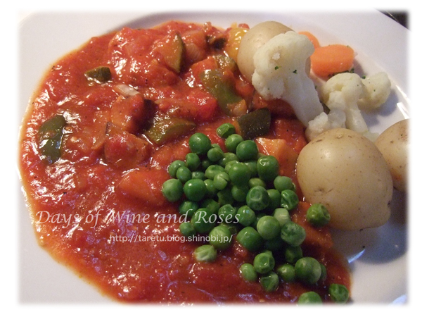 この日お昼に食べたフィッシュ&チップスのボリュームがありすぎたので、夜はベジタリアン用のラタトィユにしました。
