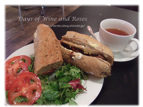 で、ドライトマトとチーズのサンドイッチです。サラダもついてます。