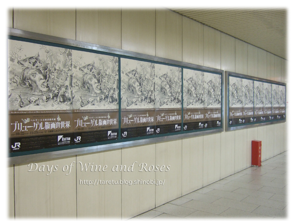 こちらは、京都駅の構内、近鉄に向かう道。ものすごい数の「聖アントニウスの誘惑」が並んでいるのは、ちょっと壮観でした。ポスターにもなっているこの絵は、ブリューゲルの版画の中でも、最もインパクトの強いもののひとつです。