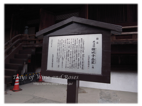 お次は金堂へ。国宝。慶長に豊臣秀吉夫人の北政所によって建てられたものだそうです。秀吉の怒りにふれて、寺領の没収の憂き目にあった圓城寺を、その死後、北政所が保護し、再建したのだとか。