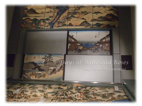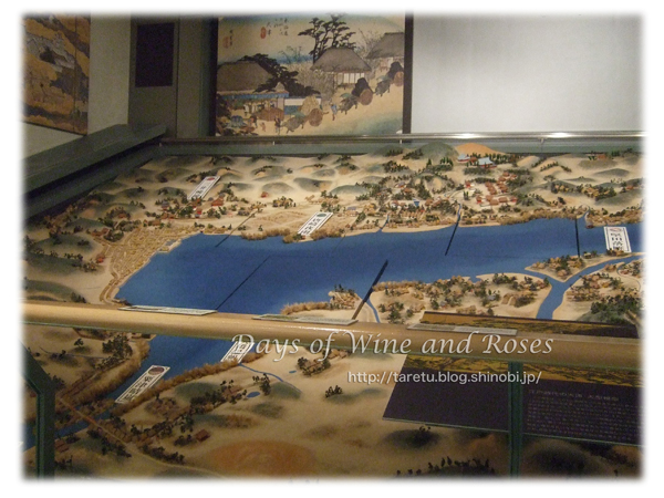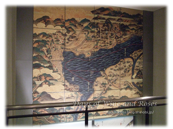 それはともかく、目をひいたのが二階と一階とにまたがって展示されている近江八景の模型です。