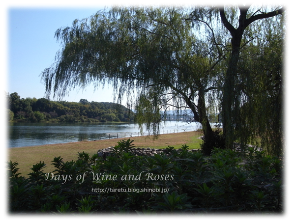 河畔には、「紫式部の泉」があります。「源氏物語」をここ石山寺に籠もって書いたから、とのこと。
