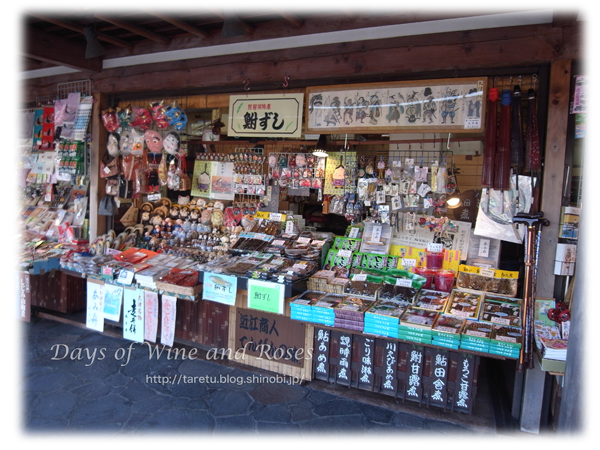 門前には、おみやげもの屋さんが2軒ほど。これほど大がかりな寺社なのに、なんともつつましやか。大津の魅力は、この観光観光していないところかも。