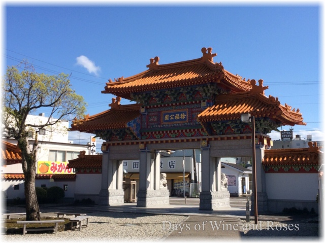その徐福を記念した公園が滞在したホテルのすぐ側。人目をひく派手な作りの門が建っています。